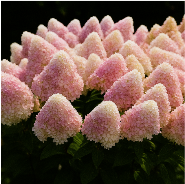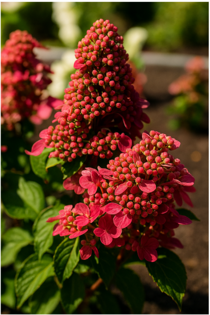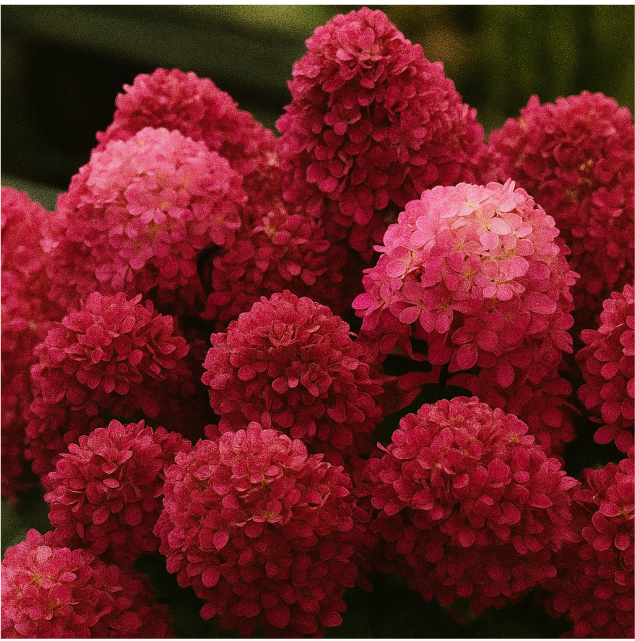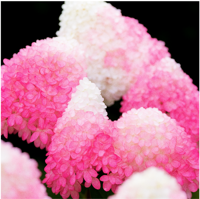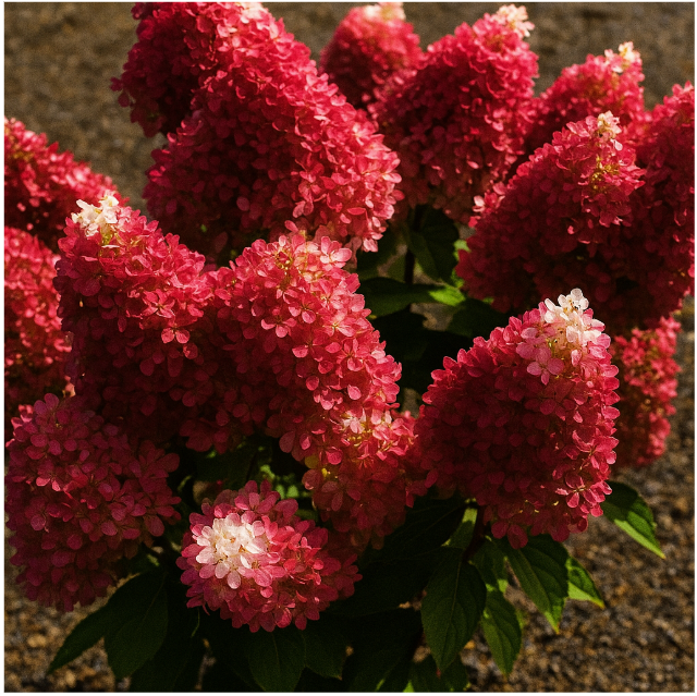 튼튼한 가지에 풍성하고 큼직한 꽃이 피며, 시간이 지날수록 흰색에서 라즈베리처럼 깊고 진한 핑크빛으로 물들어갑니다.