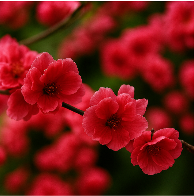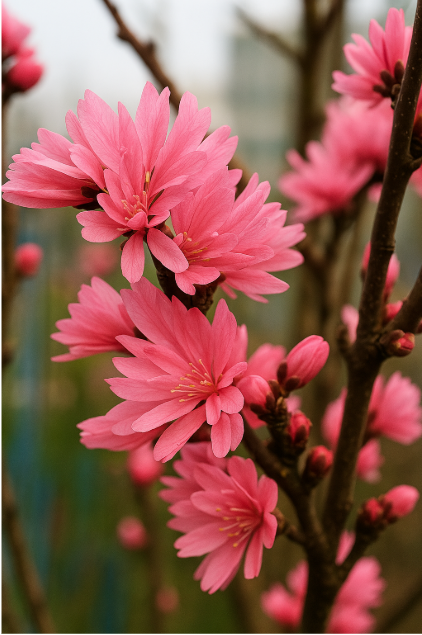 겹꽃 구조로 풍성함을 자랑하며, 가장 대표적이고 대중적인 꽃복숭아입니다. 꽃송이가 가지 전체를 덮으며 붉은 기운이 강렬하게 퍼집니다. - 어울리는 정원: 클래식한 분위기의 힐링가든