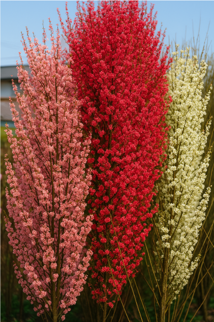 하나의 나무에서 여러 색의 꽃이 피는 이색 품종으로, 눈에 띄는 독특함과 예술적 효과를 동시에 전달합니다. - 어울리는 정원: 테마형 예술정원, 치유카페 정원