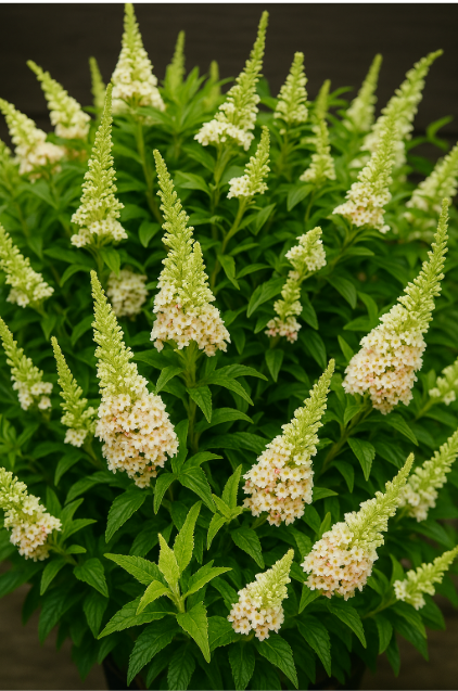 길고 풍성하게 늘어지는 순백의 꽃송이가 장관을 이루는 붓들레아 대표 품종입니다. ‘프로퓨전’이란 이름처럼 풍성함과 생명감이 가득합니다.