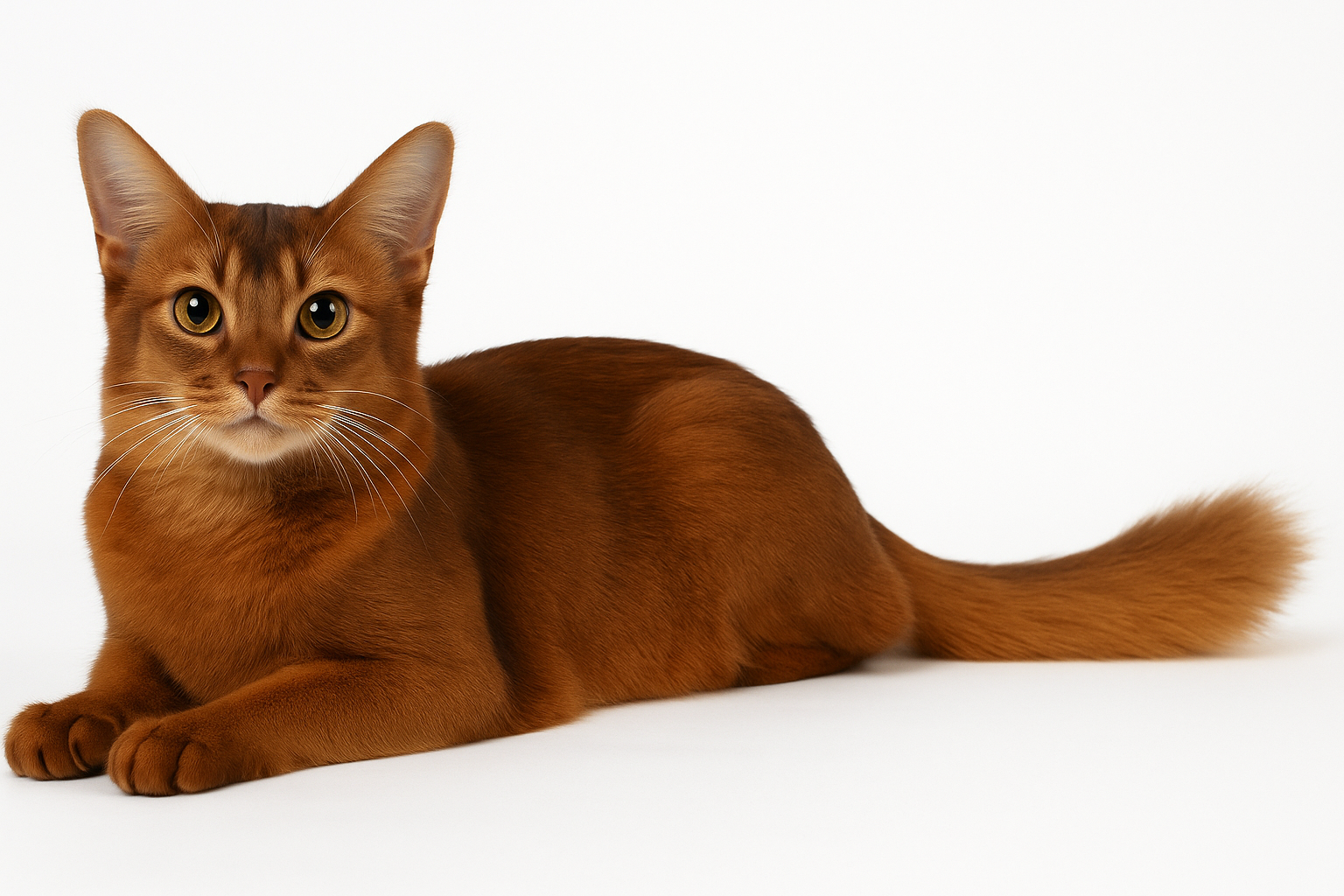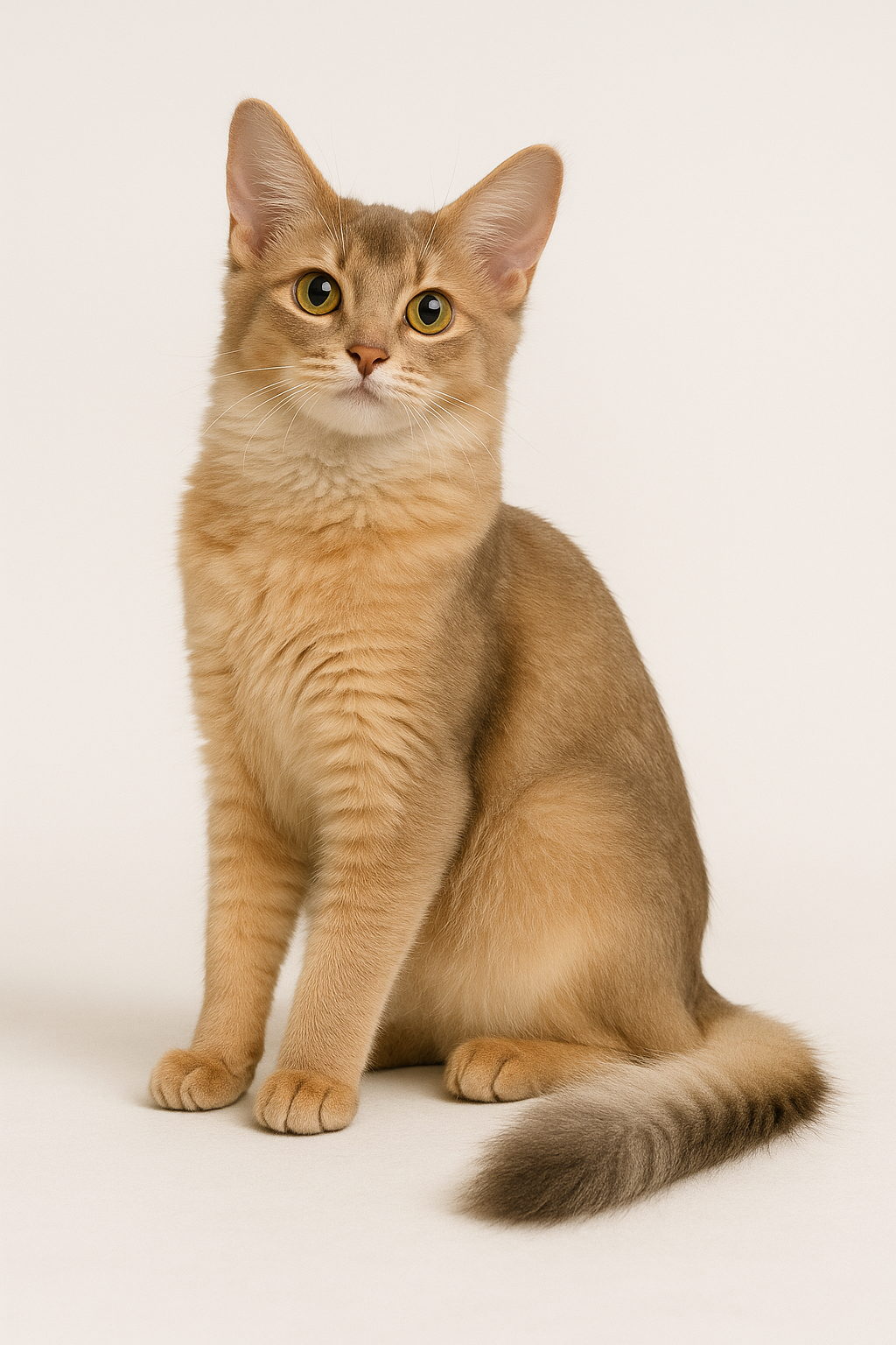 또한 소말리의 털 하나하나에는 2~3개의 색 띠가 섞여 있어, 빛에 따라 반짝이며 입체적인 인상을 줍니다.