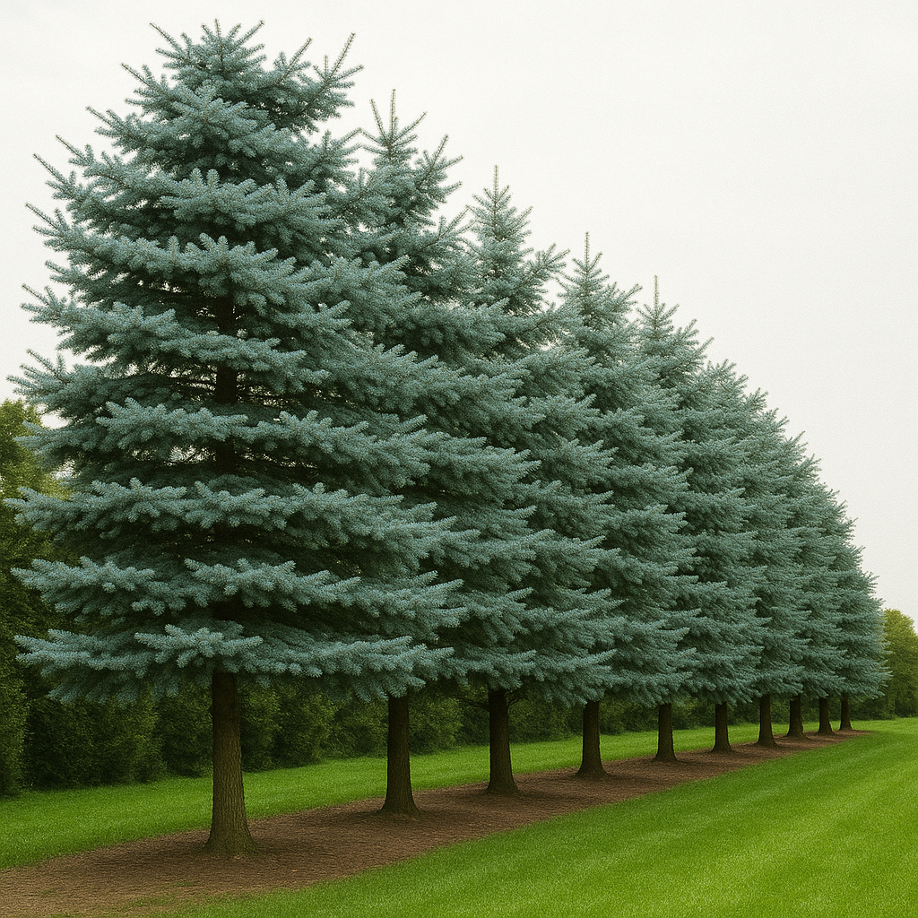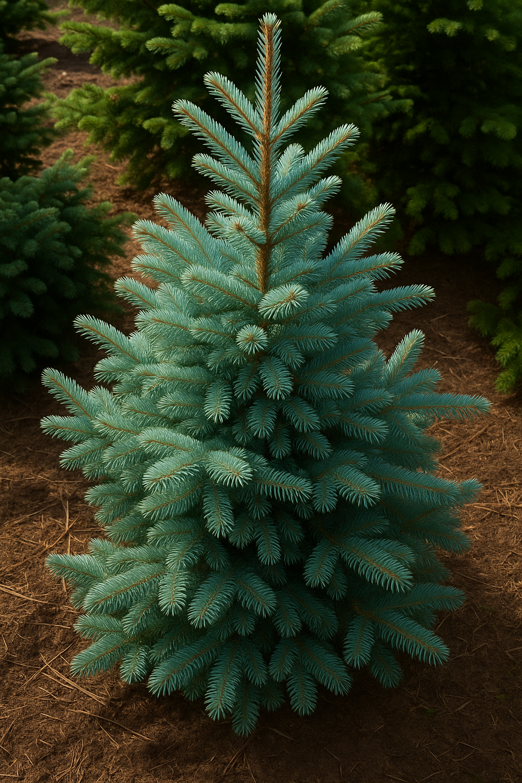 은청가문비는 은빛이 감도는 푸른 잎이 특징이며, 추위와 척박한 토양에도 잘 견디는 강건한 성질로 인기가 높다.